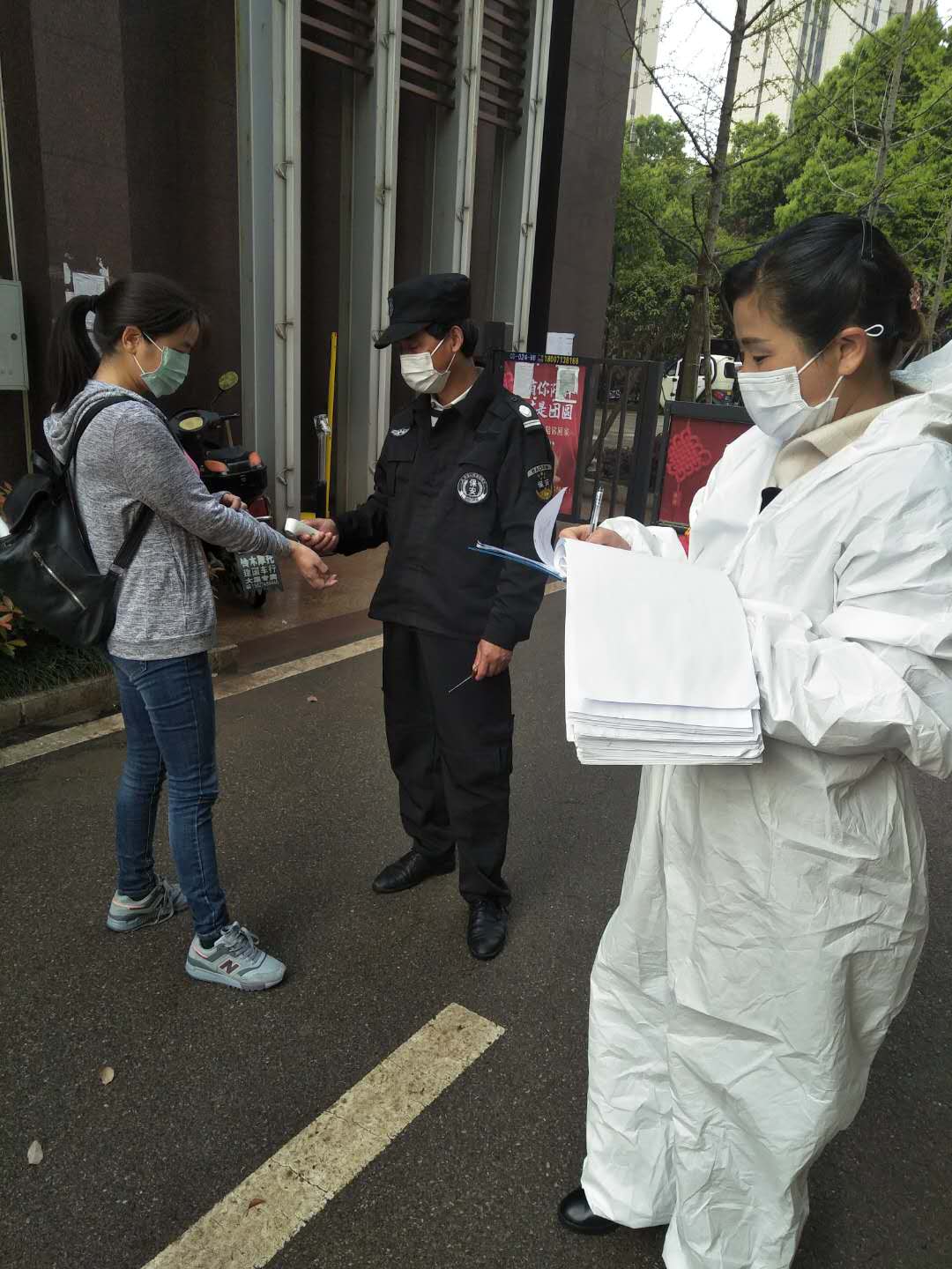 即使沒(méi)有隔離衣,沒(méi)有防護(hù)服,只有一只最普通的口罩,但只要一個(gè)通知,所有的物業(yè)人員——保潔員、保安員、維修員、客服員,不分崗位,都義無(wú)反顧地投入到戰(zhàn)斗第一線。